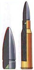 | 7, 62-мм винтовочный патрон с пулей повышенной пробиваемости (7Н13). Масса патрона - 21, 7 г, масса пули - 9, 56 г, начальная скорость - 820-835 м/с