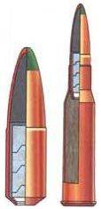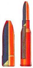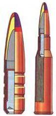 | | 7, 62-мм специальный винтовочный патрон с разрывной пулей ДД. Масса патрона - 24, 5 г, масса пули - 11, 5 г, длина пули - 28, 6 мм, начальная скорость - 810 м/с