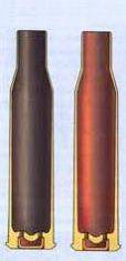 | Гильзы 7, 62-мм винтовочных патронов, обычная (слева) и для пулемета ШКАС (справа)