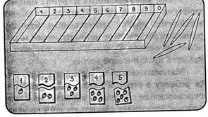 Этот материал дает ребенку также понимание одного из значений нуля. Ребенок учится сравнивать числа по их количеству. Действия производятся с помощью руки, а цифровое изображение дано на задней стенке кареток. Особое место в математических материалах М.Монтессори занимает «золотой материал» – система золотых бусин, объединенных в десятки, сотни и тысячи. Из «золотого материала» и карточек с цифрами, выложенных системно, дети строят на ковриках десятичную систему и производят исчисления: складывают, вычитают, умножают и делят.