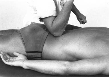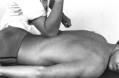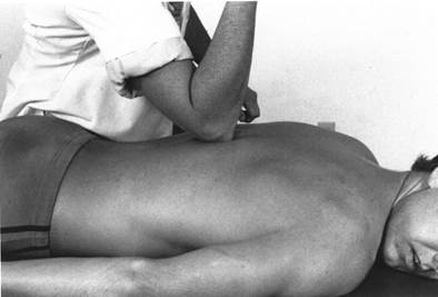 Рис. 105. Глубокое давление на мышцы разгибатели грудного отдела