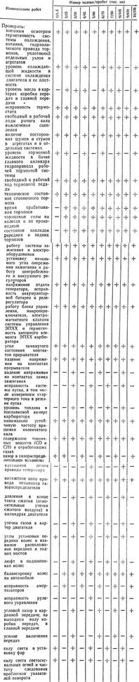 Таблица 3.14. Перечень контрольно-диагностических работ по талонам сервисной книжки автомобилей АЗЛК-2141 и АЗЛК-21412