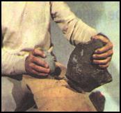 Первый шаг — исходная пластина. Чтобы получить пластины для будущих орудий, кроманьонский мастер должен был прежде всего найти хороший кремневый желвак. Треснутый для этой цели не годился, как и такой, который при простукивании издавал глухой звук, указывающий на пустоты. Иногда мастер, по-видимому, нагревал кремень — при нагревании и последующем охлаждении его кристаллическая структура становилась плотнее. Выбрав подходящий желвак, мастер оббивал его каменным отбойником, пока не получал нуклеус грубо цилиндрической формы. Это был первый и крайне важный этап изготовления орудий. Плохо обработанный нуклеус не давал длинных и тонких острых пластин, таких пластин, из которых получались безупречные орудия.