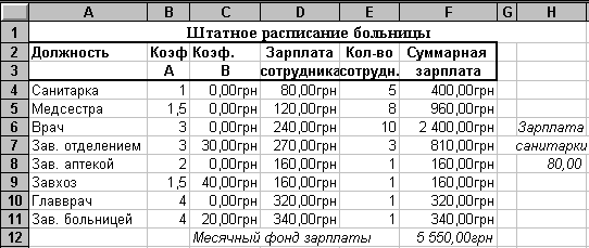 Практическое занятие № 8 Использование информационной технологии Поиск решения. Задача «Штатное расписание больницы»