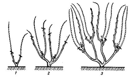 1 – первая обрезка; 2 – вторая обрезка; 3 – обрезка.