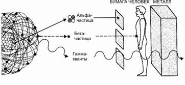 Рис. 1.5. Проникающая способность излучения. На загрязненных радионуклидами в результате Чернобыльской катастрофы территориях в настоящее время присутствуют (исключая 131I* и 134Cs*) следующие виды ионизирующих излучений (табл. 1.3): Таблица 1.3.