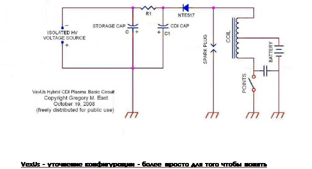 Он должен быть замечен что в следующий принципиальной схеме VexUs выбор R1 и C1 критически к частоте откликов, котор цепь будет иметь. Например если C1, то 22uf и R1 константа времени 55ohms после этого одна RC 0.0012 секунды. 5X RC дает вам быстро достаточно поручать для двигателя 4 цилиндров поворачивая 5000 RPM. Время разряда зависит на сопротивлении цепи., котор оно должно быть сдержано как можно низким. Это обусловит как вполне разрядки крышки CDI и оно плавает над 0-VDC как после того как оно показано на следе объема VexUs в последнем видеоем. В видеоем я использовал бак от 0 до 3500 омов как раз для испытания и развития в виду того что я не знал предпологать. Это совсем ново к мне слишком. Механизмом цепи будет никакая тайна. Большинств оборудование заварки Tig оборудования заварки специально имеет вызванную характеристику «высокочастотным стартом». В этом типе заварки вы используете факел не будет реально факелом а плечом сварочной машины при острый конец вольфрама положенный в кожух в инертный газ. Сильнотоковая дуга произведена между этим