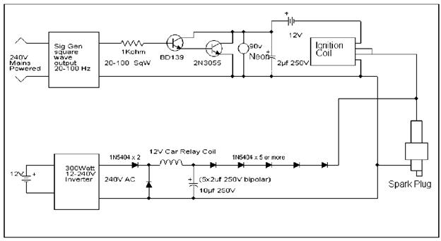 На более высоких тарифах ИМПа ульс трудно получающ достаточную воду в плазму но если вы управляете к, то они снимут вне как пламя реактивного двигателя с соответствующе сильным шумом также. Свет настолько ярок что я рекомендую темные стекла пока испытывать эту цепь и шум настолько громок, пока нагнетать воду в его непрерывно от высоких взрывов тарифа ИМПа ульс, что я также рекомендую штепсельные вилки уха по мере того как мои уши все еще звенят... на тарифах ИМПа ульс от 20-70 Hz течение входного сигнала на 12 вольтах к инвертору находился между 2.5 и 5 AMPS. Для индуктора я просто использовал стандартную катушку релеего автомобиля 12V. По моему мнению я верю что эта цепь до тех пор выполнит самое лучшее на реальном двигателе. Так я думаю я готов для этого шага затем. Я понимаю что много могут быть полны страстного желания попытать начать построить эти цепи для того чтобы испытать их но я должен усилить что если вы не понять как они работают, также, как имейте некоторый опыт в радиотехнических схемах здания и испытание, оно правоподобн для того чтобы быть дорогей и по возможности также опасной тренировкой для вас. Так угодите поймите вы будете зданием и как они работают прежде чем вы продолжаете по мере того как будут много ловушек для неопытного.