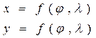 В проекции Гаусса-Крюгера есть только линейные искажения. Максимума они достигают на экваторе и составляют примерно 1/800 расстояния, для территории России искажение составляет примерно 1/1100, т.е. для карт масштаба 1: 10000 и мельче такими искажениями можно пренебречь. Для карт более крупных масштабов для уменьшения искажений используют 3о зоны. Свойства проекции: 1. Сохраняется равенство углов на плоскости и сфере 2. Линейные искажения малы и ими пренебрегают. 3. Все меридианы и параллели можно изображать прямыми линиями 4. В каждой зоне вводится система координат х и у (Зональная система координат Гаусса - Крюгера). За начало координат принимается точка пересечения осевого меридиана зоны с экватором. Ось Х направлена по осевому меридиану к северу. Ось у направлена по экватору к востоку. Для удобства использования введенной системы координат внутри каждой зоны наносится координатная сетка (линии параллельные осям координат). Чтобы исключить отрицательные значения координаты у, начало координат мысленно переносят на 500 км влево. Для сохранения однозначности определения координат точек первые цифры (одна или две) в координате у указывают номер зоны.