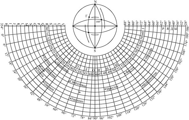 Определение. Номенклатурой называется система разграфки и обозначения топографических карт. Полученные в проекции Гаусса-Крюгера шестиградусные зоны назовём колоннами и пронумеруем от 1 до 60, начиная от меридиана с долготой 180о, тогда связь между номерами колонн и зон определяется формулой n = m Разделим земной шар параллелями через 4о и обозначим пояса от экватора к полюсу А, В, С...V. В результате на пересечении колонн и поясов образуется трапеция размером 4ох6о, соответствующая листу карты масштаба 1: 1000000, который является основой для топографических карт более крупных масштабов, и обозначается, например, N – 37. Чтобы получить листы карт более крупных масштабов необходимо выполнить ряд правил: 1. Деление на листы карт более крупных масштабов проводится по параллелям и меридианам. 2. Листы более мелкого масштаба должны делиться на целое число карт более крупного масштаба. 3. В номенклатуре листов более крупного масштаба указываются номенклатуры листов более мелкого масштаба, из которых они получены. Лист карты масштаба 1: 1 000 000 делится на 144 части (12 по широте и 12 по долготе) и обозначаются цифрами от 1 до 144. Такой лист соответствует листу карты масштаба 1: 100000 и обозначается N – 37 – 144. Лист карты масштаба 1: 100000 делится на 4 части (2 по широте и 2 по долготе) карты масштаба 1: 50000 и обозначается N – 37 – 144 – Г. Лист карты масштаба 1: 50000 делится на 4 части (2 по широте и 2 по долготе) и обозначаются буквами а, б, в, г. Такой лист соответствует листу карты масштаба 1: 25000 и обозначается N – 37 – 144 – Г – г. Лист карты масштаба 1: 25000 делится на 4 части (2 по широте и 2 по долготе) и обозначаются цифрами 1, 2, 3, 4. Такой лист соответствует листу карты масштаба 1: 10000 и обозначается N – 37 – 144 – Г – г – 2. Размеры листов каждого из масштабов одинаковы.