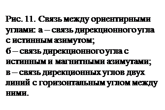 Определение: Ориентировать линию местности – это значит определить ее направление относительно меридиана. Будем различать три меридиана: 1. Истинный - дуга большого круга, соединяющая географические полюса Земли. 2. Магнитный - линия на поверхности Земли, соединяющая магнитные полюса. 3. Осевой - центральный меридиан зоны проекции Гаусса - Крюгера. Определение Азимутом называется угол, отсчитанный от северного конца меридиана по ходу часовой стрелки до данного направления. Измеряется от 0 до 360о. В зависимости от выбранного исходного меридиана углы называются: 1. Если истинный меридиан, то угол называется истинный азимут Аи. 2. Если магнитный меридиан, то угол называется магнитный азимут Ам. 3. Если осевой меридиан, то угол называется дирекционный угол В общем случае направление меридианов не совпадает.