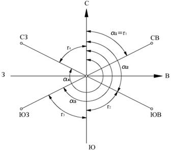 Начало координат расположено в центре асс Земли. Ось Z направлена по оси вращения планеты в северном направлении. Ось Х направлена в точку пересечения гринвичского меридиана и экватора. Ось Y дополняет систему до правой. Наиболее часто эта система применяется в спутниковой (космической) геодезии при наблюдениях за искусственными спутниками Земли. в) Плоская прямоугольная система координат (местная) Так как на небольших участках кривизной Земли можно пренебречь, то на строительной площадке используется местная система прямоугольных декартовых координат с началом обычно в юго-западном углу площадки. Но в отличие от математики эта система координат не правая, а левая, поэтому меняется нумерация четвертей. Формулы тригонометрии остаются без изменений. Измерение высот проводится чаще всего в условной системе высот