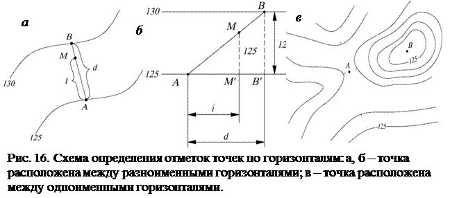 Для облегчения решения различных задач по карте горизонтали подписываются так, чтобы верх цифр был направлен в сторону повышения рельефа. Обычно подписывается либо каждая четвертая, либо каждая пятая горизонталь, в зависимости от высоты сечения рельефа.