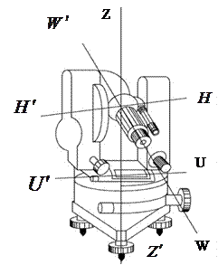 Для обеспечения правильности работы, любой прибор должен отвечать ряду геометрических требований. В процессе эксплуатации эти требования могут нарушаться. Поэтому необходимо контролировать эти требования в процессе эксплуатации и исправлять нарушенные условия. Определение Поверкой называется совокупность операций, направленных на осуществление контроля требуемого условия. В теодолите такими условиями являются геометрические требования к взаимному расположению осей. Мы рассмотрим четыре оси: ось уровня UU1, ось вращения прибора ZZ1, ось вращения зрительной трубы HH1, визирную ось WW1.