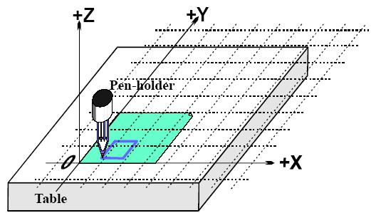 Проблема состоит в том, что квадрат будет нарисован не на бумаге как в примере на рисунке 7.1 а на столе в углу. Написанная подпрограмма измеряла расстояние от края листа, а станок меряет от своего нулевого положения.