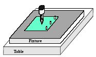 7.6.1 Окончание фрезировки На станке управляемом вручную довольно просто почуствовать когда инструмент касается заготовки, но для точной работы лучше иметь что-нибудь для определения (можно кусочек бумаги или пластика) для того чтобы можно было увидеть когда касание состоялось. Это показано на рисунке 7.10