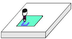 Предположим что нарисованный нашим станком синий квадрат это внешняя граница для отверстия в детской игрушке по сортировке предметов, в которую нужно будет помещать синий куб. Помните что G-коды управляют движением управляемой точки. Подпрограмма из примера нарисовала квадрат со стороной 1". Если инструментом была ручка с широким мазком, то отверстие будет значительно меньше чем 1" квадрат. Смотри рисунок 7.13.