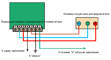 В электронной бесконтактной системе зажигания имеется возможность увеличения подаваемого напряжения на электроды свечи. Таким образом, улучшается процесс воспламенения рабочей смеси. При использовании электронной бесконтактной системы зажигания, двигатель более экономно расходует топливные ресурсы. У этой системы зажигания также есть цепи высокого и низкого напряжения. Цепи высокого напряжения ничем не отличаются от цепей вышеописанной системы. Имеются различия между цепями низкого напряжения. Отличие заключается в том, что в электронной бесконтактной системе зажигания используются электронные устройства – коммутатор и датчик-распределитель (датчик Холла) (рисунок 6.6). Элементы электронной бесконтактной системы зажигания это: · источники электрического тока, · катушку зажигания, · датчик - распределитель, · коммутатор, · свечи зажигания, · провода высокого и низкого напряжения, · выключатель зажигания. Бесконтактный датчик Холла, выполняющий функцию контактов, посылает управляющие импульсы в электронный коммутатор, который управляет катушкой зажигания. Катушка зажигания, в свою очередь, преобразует ток низкого напряжения в ток высокого напряжения. И мы получаем 20 000 вольт, необходимые для возникновения искры.