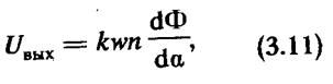 Рис. 3.30 Магнитный поток Ф и напряжение обмотки Uвых в зависимости от угла поворота a распределителя потока.