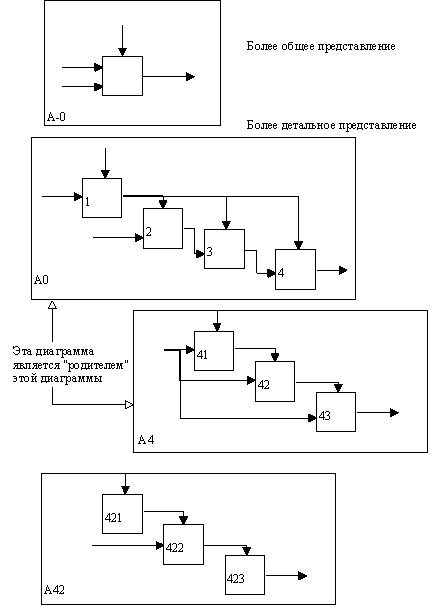 Рис.3. Структура SADT-модели. Декомпозиция диаграмм