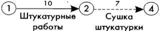 К понятию «работа» также относится понятие «зависимость». Зависимость – это связь между двумя или несколькими событиями, не требующая ни затрат времени, ни затрат ресурсов. В сетевой модели зависимость показывается в виде пунктирной стрелки без указания времени (рис.14).