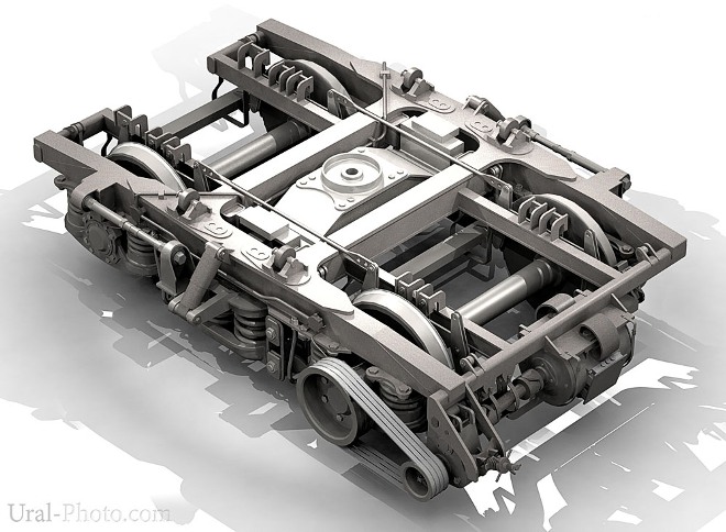 Все вместе - рессорное подвешивание - служит для обеспечения плавного и безопасного хода подвижного состава, а также для передачи нагрузки от веса вагона и распределения ее между отдельными колесными парами; тормозная рычажная передача с двухсторонним нажатием колодок - для передачи усилия, развиваемого на штоке тормозного цилиндра, на тормозные колодки; гидравлический гаситель колебаний - для гашения вертикальных колебаний кузова, возникающих при движении;