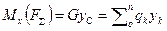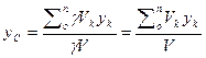 Для определения точки приложения силы тяжести (равнодействующей параллельных сил) используем теорему Вариньона о моменте равнодействующей: Момент равнодействующей относительно оси равен алгебраической сумме моментов сил системы относительно этой оси. Тело состоит из частей, силы тяжести которых qk приложены в центрах тяжести (ЦТ) этих частей. Пусть равнодействующая (сила тяжести всего тела) приложена в неизвестном пока центре O. xc, yC и zC — координаты центра тяжести С; xk, yk и zk — координаты центров тяжести частей тела. Из теоремы Вариньона следует: