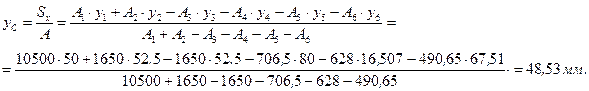 Прямоугольник 3: yc 3 = 52, 5 мм, xc 3 = 90 мм, A 3 = 30 55 = 1650 мм2.