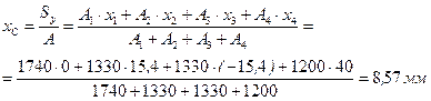 Рис. 6.11 Выполним расчет координат центра тяжести сечения по формулам: