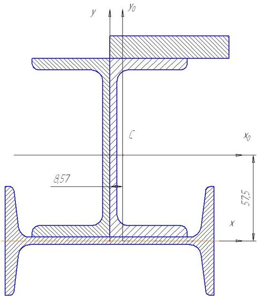 Найденный центр тяжести сечения изображен на рисунке 6.4.
