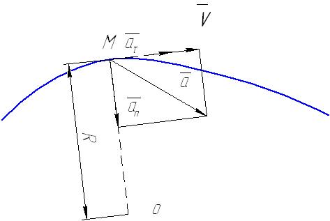 где R – радиус кривизны траектории в данный момент времени. Нормальное ускорение всегда направлено перпендикулярно скорости к центру кривизны дуги точка О рис. 7.4. Значение полного ускорения определяется как