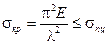 Формула Эйлера выполняется только в пределах упругих деформаций. Таким образом, критическое напряжение должно быть меньше предела упругости материала. Предел упругости при расчетах можно заменять пределом пропорциональности. Таким образом, σ кр ≤ σ у ≈ σ пц, где σ у— предел упругости; σ пц — предел пропорциональности материала;