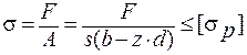 Разрушение деталей по нормальному сечению рис ослабленному отверстиями, может произойти под действием больших статических сил. Для обеспечения прочностной надежности соединения нормальное растягивающее напряжение в этом сечении должно удовлетворять условию