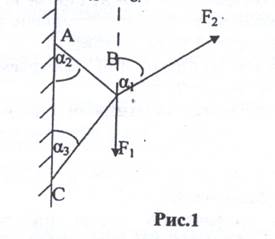 Определить аналитическим и графическим способами усилия в стержнях АВ и ВС заданной стержневой системы (рис. 1). Дано: F1 = 28 кН; F2 = 42 кН; ɑ 1 = 45о; ɑ 2 = 60о; ɑ 3 = 30о. Определить: усилия SA и Sc.