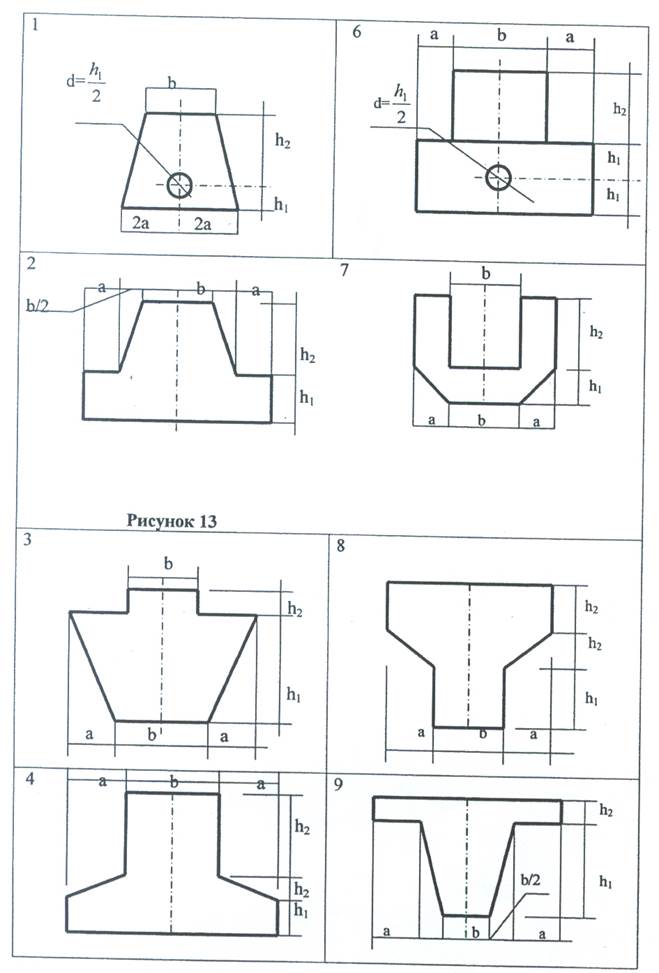 Задача 3. Для сечения сборных элементов зданий (рис. 13) определить положение центра тяжести. Данные для задачи своего варианта взять из таблицы. Таблица 4
