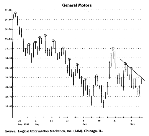 также грешит неточностью и полным невниманием к мелким деталям. Между тем успешное применение линий тренда требует от аналитика повышенной внимательности и последовательности. Вместо того чтобы просто сформулировать набор правил для верного отбора критических точек, я хочу рассказать одну поучительную историю, которая произошла со мной и моим коллегой лет двадцать тому назад. Она послужила своего рода катализатором и полностью перевернула мои воззрения как аналитика. В ту пору я и мой коллега — начинающие трейдеры — были полностью поглощены рыночной стихией. Анализ движения цен стал не просто нашей профессией — он буквально превратился в наваждение. Вернувшись домой, мы хватались за телефонные трубки и часами обсуждали необычные графические модели. В один из таких вечеров мы долго обсуждали взаимодействие различных тенденций в развитии цен. Затем каждый из нас построил на своем графике соответствующие линии тренда. Когда на следующий день, придя на работу, мы сравнили графики, оказалось, что начерченные нами линии даже отдаленно не напоминают друг друга. Все это меня сильно озадачило. Получалось, что все это время мы разговаривали друг с другом на разных языках. Я решил немедленно с этим покончить. Чтобы избежать непонимания и путаницы в дальнейшем, нужно было разработать единую терминологию и точно определить понятия. И я приступил к каталогизации и стандартизации широко использующихся методов технического анализа, стремясь усовершенствовать их и разработать свои собственные. До сих пор эта работа не закончена. Первым объектом моего пристального внимания стали линии тренда. Для иллюстрации и обоснования своих теоретических положений я буду пользоваться дневными графиками и данными о дневных ценах, хотя все рассматриваемые закономерности распространяются и на любой другой промежуток времени. Причины, по которым я выбрал именно дневные графики, сводятся к следующему: 1. Дневная информация является наиболее легко доступной; десятилетиями аналитики работали преимущественно с дневными графиками; 2. Используя дневные графики, трейдер избавлен от необходимости постоянно следить за внутридневным поведением рынка; он меньше рискует попасться в ловушку из-за нередких корректировок цен, которые являются " болезнью" внутридневных баз данных; 3. Вероятность заключения сделки по цене, наиболее близкой к указанной в приказе увеличивается, если тревдер пользуется рыночными сигналами, основанными на дневной информации.