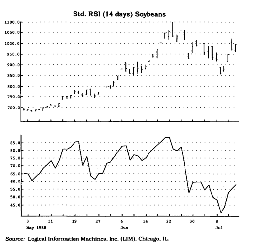 Рис. 3-2 Индикатор показывал состояние перекупленности (выше отметки 65) в течение длительного периода в июле и в августе и недолго в сентябре.