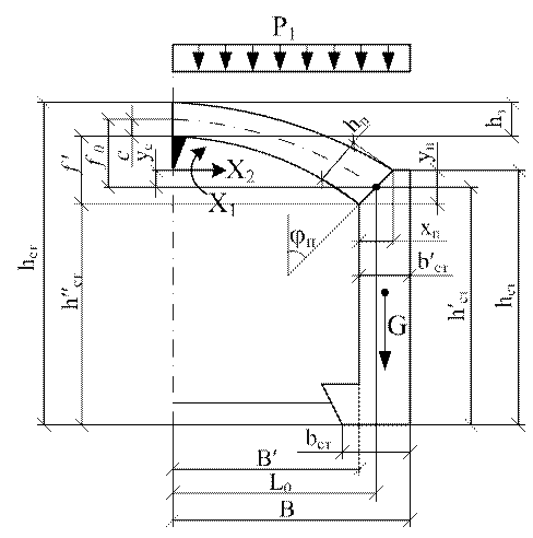 Для определения изгибающих моментов и нормальных сил в сечениях свода последний рассматривают как пологий, опирающийся на массивные стены. Положение упругого центра свода обделки определим по формулам (3.12) – (3.14).