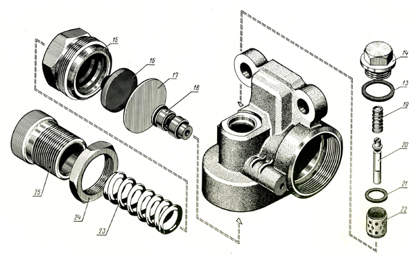 15 – крышка диафрагмы (348.122) – 1 шт. – 0, 355 кг 16 – упорка (348.212) – 1 шт. – 0, 01 кг 17 – мембрана (350.1755) – 1 шт. – 0, 003 кг 18 – седло клапана (348.102) – 1 шт. – 0, 06 кг 19 – пружина (222-25) – 1 шт. – 0, 002 кг 20 – клапан (348.107) – 1 шт. – 0, 009 кг 21 – прокладка (348.216) – 1 шт. – 0, 0002 кг 22 – фильтр (348.020) – 1 шт. – 0, 006 кг 23 – пружина (222.47А) – 1 шт. – 0, 17 кг 24 – контргайка (348.214) – 1 шт. – 0, 075 кг 25 – упорка регулирующая (394.013) – 1 шт. – 0, 325 кг