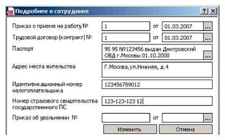 Нажимаем кнопку «Изменить». А также вводим данные по заработной плате и другую сопутствующую информацию (кнопка «Заработная плата»)