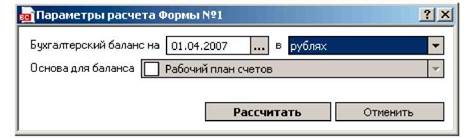 Это, оказывается, наши затраты по аренде электроинструмента. Кроме того, из самого вида проводок можем определить результаты деятельности: У нас убыток по обычным видам деятельности, так как вид проводки следующий: Дт 99.1 - Кт90.9, если будет такой Дт 90.9 - Кт 99.1, то значит прибыль. Теперь сформируем баланс за первый квартал с помощью отчета «Бухгалтерский баланс(форма№1)», расположенного пункте меню Отчеты/Формы№№1-6 Рабочая дата должна стоять 01.04.2007 Единицы измерения укажем для большей точности - рубли