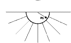 Здесь r1- радиус внутреннего цилиндра; r2- радиус внешнего цилиндра, l – длина цилиндров в метрах. По этому выражению можно рассчитать сопротивление изоляции одножильного коаксиального кабеля (например, кабеля для телевизионной антенны) или одножильных кабелей на напряжение 110…500 кВ, имеющих экраны (жила – внутренний цилиндр, экран - наружный цилиндр). Радиально-сферическое поле. В этом поле поверхности уровня - это сферы с общим центром, а линии смещения направлены по радиусам.