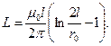Индуктивность прямолинейного отрезка немагнитного проводника: