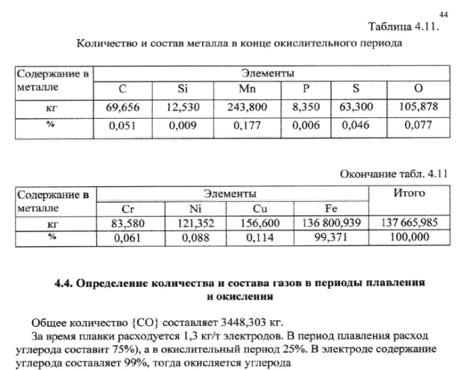 | Примерный химический состав полупродукта представлен в табл. 4.2.