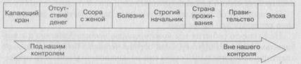 тать с биологическим возрастом, на который можно влиять!), погодные условия, правительство, уровень цен и пенсий — многое в России относится к третьей категории стрессоров. Сюда же можно отнести привычки и характеры других людей. Так как между вышеописанными категориями стрессоров нельзя провести четкой разделительной линии, то их можно разместить на некоей шкале, начиная от тех, на которые мы, безусловно, можем повлиять до тех, которые совершенно не подвластны нам (рис. 32).