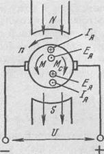 Айналу жиілігін бірқ алыпты (плавно) жә не кең диапазонда реттеуді қ ажет ететін электржетектерінде тұ рақ ты ток қ озғ алтқ ыштары кең інен қ олданылады. Тұ рақ ты ток қ озғ алтқ ыштарының қ асиеттері де генераторлардікі секілді олардың қ оздырылу ә дісі мен жә не қ оздыру орамдарының қ осылу схемасына байланысты. Қ оздырылу ә дісіне байланысты электромагнитті жіне магниттіэлектрлі қ оздырылатын болып жіктеледі. Электромагнитті қ оздырылатын қ озғ алтқ ыштар якорь орамдары мен қ оздырғ ыш орамдардың арасындағ ы электрлік байланысқ а байланысты тә уелсіз, параллель, тізбектей жә не аралас қ оздырылатын болып бө лінеді. Магниттіэлектрлі ә діспен қ оздырылатын қ озғ алтқ ыштардың магнит ағ ыны тұ рақ ты магниттер арқ ылы пайда болады. Жоғ арыда атап ө тілгендей тұ рақ ты ток машиналары да қ айтарымды, яғ ни генератор ретінде де қ озғ алтқ ыш ретінде де жұ мыс жасай алады. Қ ұ рылысы жағ ыныан тұ рақ ты ток қ озғ алтқ ыштары генераторлардан айырмашылығ ы болмайды. Егер генераторды бірінші ретті қ озғ алтқ ыштан ажыратып қ оздыру жә не якорь орамдарына кернеу беретін болсақ, якорь қ озғ алысқ а келіп машина электр энергиясын механикалық қ а тү рлендіріп қ озғ алтқ ыштық режимде жұ мыс жасай бастайды. Якорь орамдарындағ ы ток пен ЭҚ К бағ ыттары 3.1-суретте кө рсетілген. Электр энергиясының механикалық қ а тү рлену процессін 3.2 – суретте кө рсетілген энергетикалық диаграммадан анық кө ріге болады. 3.2 – суретте