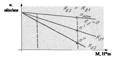 Қ осымша кедергі Rд = 0 болғ андағ ы механикалық сипаттама ө зіндік деп аталады. Якорь тізбегіне Rд қ осымша кедергісін қ осып жасанды сипаттамаларды аламыз. Механикалық сипаттаманың қ аттылығ ы қ осымша кедергінің шамасы қ анша жоғ ары болса, ол сонша жұ мақ болып табылады, яғ ни сипаттаманың ордината осіне жанасу бұ рышы сү йір бола тү седі. Айналдырғ ыш момент ток шамасына пропорциональ ендеше Ф = const болса, онда n = f(M) жә не n= f(I) тә уелділіктері қ исық тарыны бір-біріне ұ қ сас болып табылады. Механикалық сипаттама (4.2) тең деуін сараптай келе қ озғ алтқ ыштың айналу жиілігін бірнеше ә дістермен ө згертуге болатанын кө руге болады, олар: якорь тізбегіне Rд қ осымша кедергі енгізу, Ф қ оздыру магнит ағ ынын ө згерту жә не берілетін кернеу U. шамасын ө згерту арқ ылы реттеу ә дістері.
