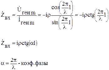 Характер реактивности (емкостная, индуктивная) зависит от знака (ctg), т.е. от длины отрезка l.