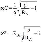 Зная частоту генератора ω находим L и C. При RA < ρ