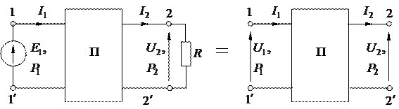 Рисунок 1.56 - Пассивный четырехполюсник Здесь: зажимы 1-1¢ - называются входными или первичными; зажимы 2-2¢ - называются выходными или вторичными; ток, напряжение и мощность: ток, напряжение и мощность: Сопротивление, замеренное с зажимов 1-1¢, называется входным или первичным. Сопротивление, замеренное с зажимов 2-2¢, называется выходным или вторичным.